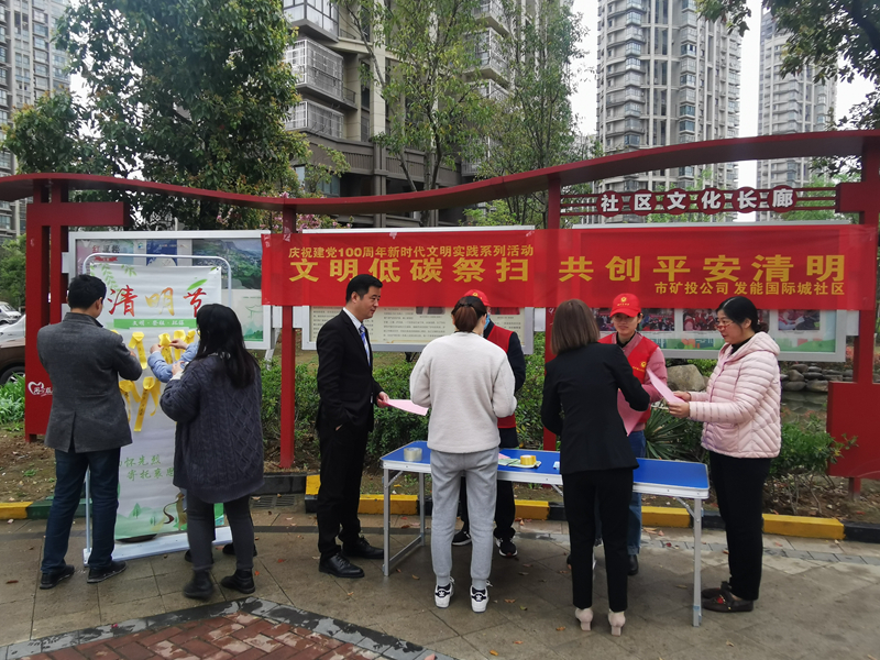 4月1日下午,市礦投公司黨員志愿者深入發(fā)能國(guó)際城社區(qū)開(kāi)展宣傳活動(dòng),引導(dǎo)居民清明祭奠綠色出行,選擇獻(xiàn)花祭奠等文明、低碳的祭奠方式。